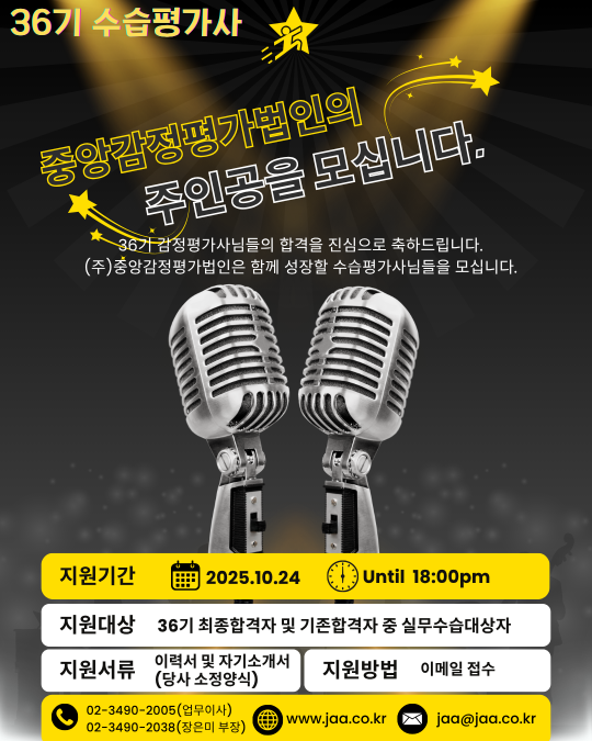 가치평가의 새로운 패러디임을 제시하는 (주)중앙감정평가법인에서 함께 비상할 수 있는 수습평가사를 모집합니다.